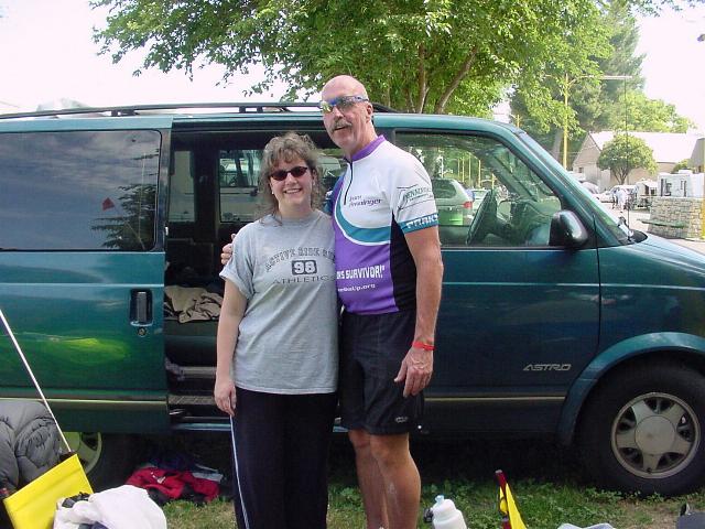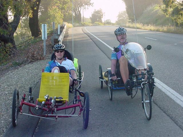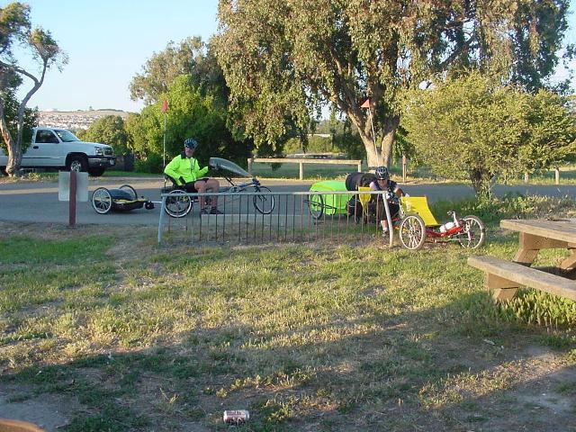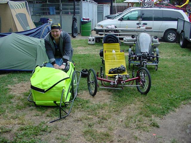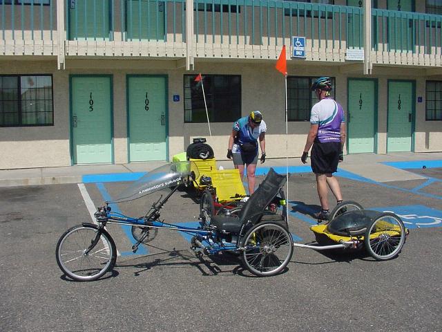 The GWBR ( Great Western Bike Rally ) was going on from Thursday to Sunday . Lissa and I (Middle Picture below) arrived to the rally on Saturday afternoon after a five hour drive. Suzy, Lissa's sister, has done a huge favor and dropped the trike and trailer of for us. Few hours later Suzy left and then it hit us, we have to ride all the way back to LA on the only transportation we have, the trike. After checking in, we set up our tent in the Bicycle Town, and met up with Parky ( Jim Wetherell Third Picture he is a Parkinson survivor who keeps the disease in control by cycling ) who talked me and Lissa into doing the ride earlier this year at the Los Angeles Acura Ride.
