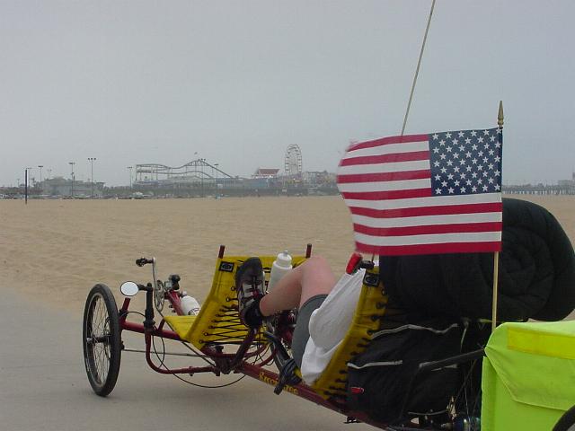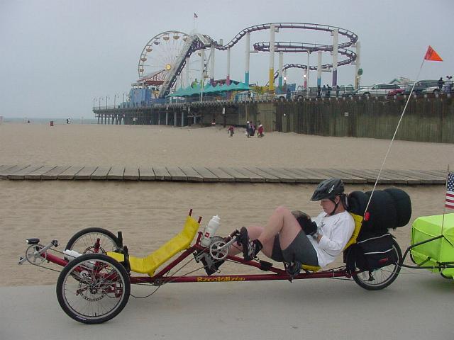 Saturday Lissa and I slept in till 10 am. After breakfast we said good byes to Jim and Parky, and we were on our way to Santa Monica. First stop was at Point Magu for a break and some pictures. Then we rode thru Malibu and Zuma Beach, and five hours later we were at the Santa Monica Pier. Running short on time, we had to call my sister, Violet, to come pick us up in Venice Beach. Our original plans were to ride back all the way to San Dimas.
